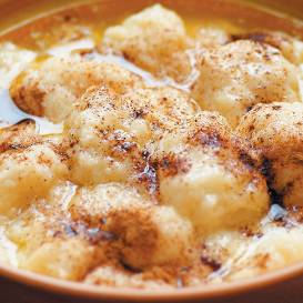 - Pildījumam – 3 olu dzeltenumus saputo ar 50 g cukura un vaniļas cukuru, iemaisa saberztu vai sablendētu biezpienu, mannu un 2 ar 50 g cukura saputotus olu baltumus.
