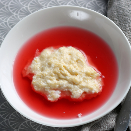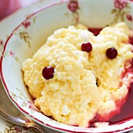 - Karstā putrā lej un, nepārtraukti maisot, iejauc sakultus olu dzeltenumus.