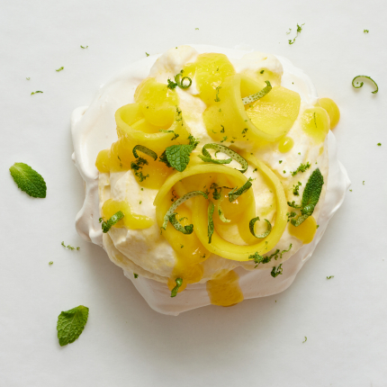 - Otru pusi kopā ar laima sulu un pūdercukuru sablendē, iemaisa sagriezto pusi.