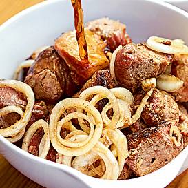 - Ja kādam ir iebildumi pret kinzu, tad to var aizstāt ar pētersīļiem vai citiem sev tīkamiem garšaugiem. Garšaugus var arī nepievienot, bet tad sautējums būs garlaicīgs.