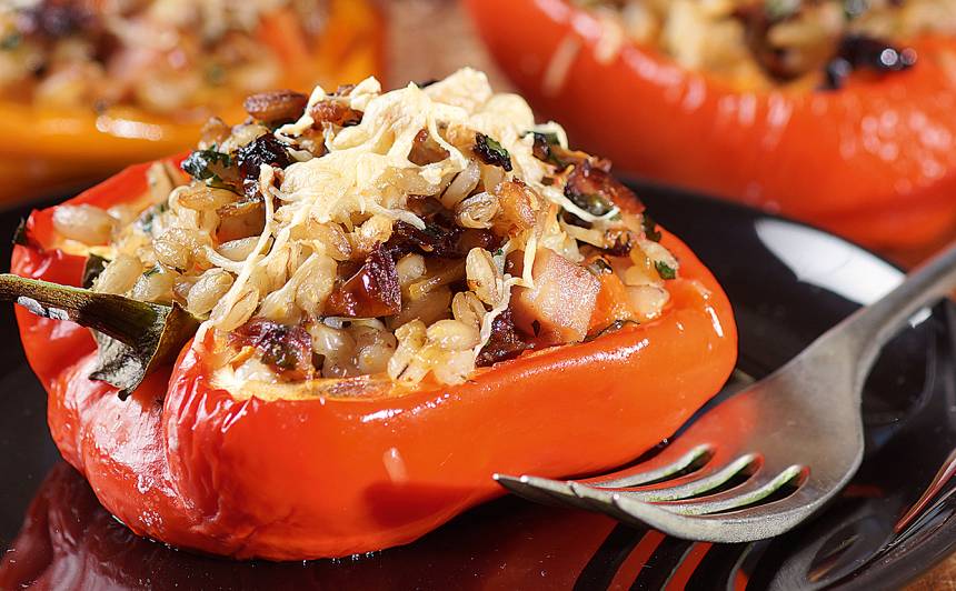 Ceptas pildītas paprikas ar grūbām un vistas girosu