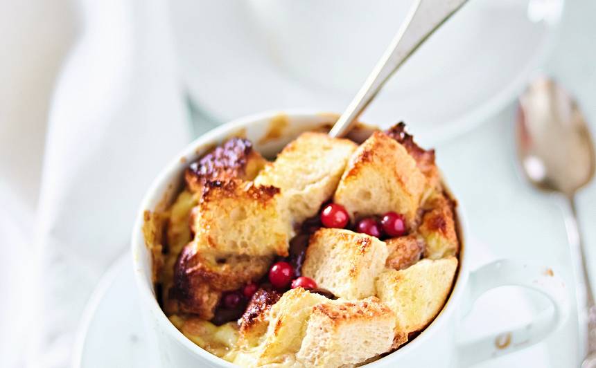 Vienkāršs risinājums klasiskam desertam, kas ļauj gan izmantot sakaltušu maizi, gan izvairīties no liekas trauku mazgāšanas. Viss notiek vienā krūzē – no sastāvdaļu sajaukšanas līdz cepšanai. Krāsnī olu un piena maisījums maizi pārvērš mīkstā, suflē līdzīgā kārumā, kamēr virspuse kļūst patīkami kraukšķīga. Ideāla izvēle vēlām brokastīm, kad katrs vēlas savu, tikko no krāsns izņemtu porciju.