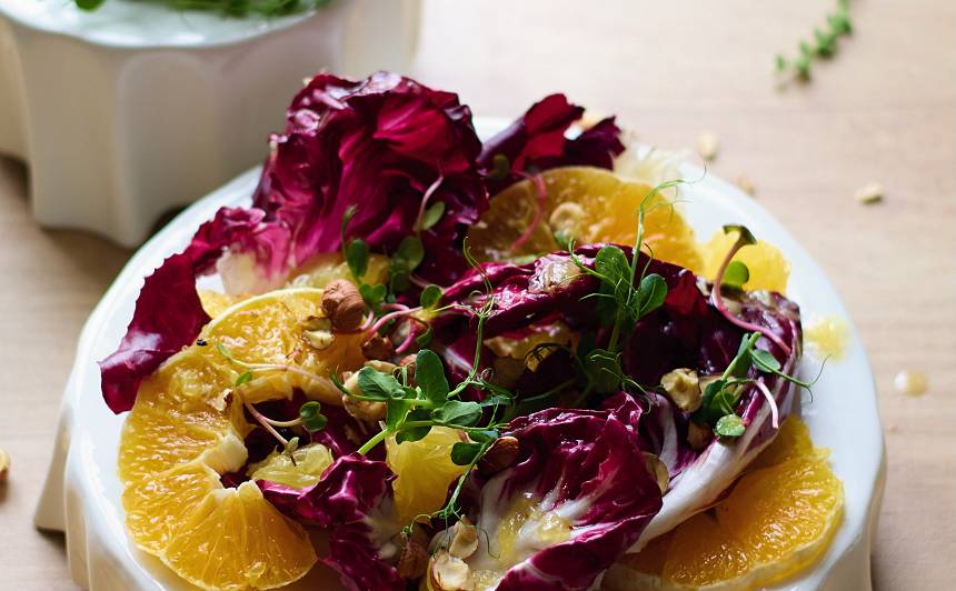 Cigoriņu un apelsīnu salāti ar riekstiem – diviem gardēžiem