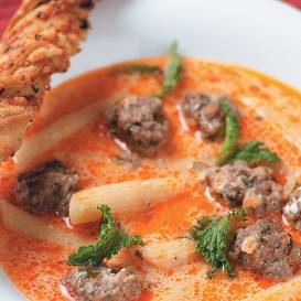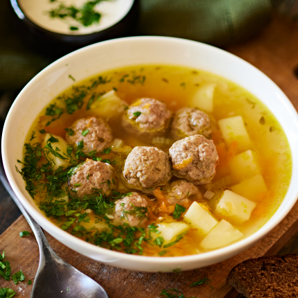- Pārlej buljonu, uzvāra, ar tajā apmērcētu karoti no maltās gaļas ņem mazas piciņas un ielaiž buljonā.