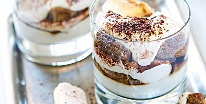 - Ideālā tiramisu krēma proporcija – 100 g pūdercukura, 2 olas, 250 g maskarpones (šo desertu var gatavot arī porciju trauciņos).
