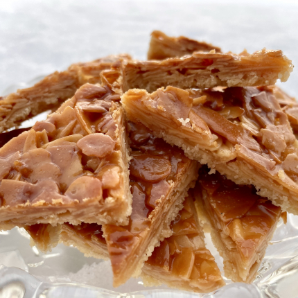 - Ar pirkstiem sadrupina arī 60 g mandeļu skaidiņu, iemaisa biskvīta drumstalās. Saputo 150 g krējuma, kopā ar 2–3 ēdamkarotēm ruma iemaisa biskvīta un mandeļu drumstalās.