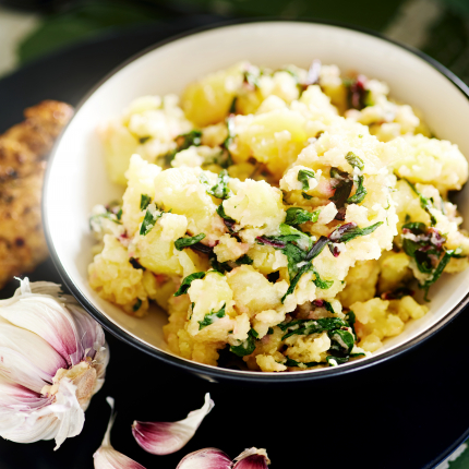 - Siltos kartupeļus pārlej ar mērci, pievieno arī sagrieztas bazilika lapiņas, izcilā, lai sajaucas.