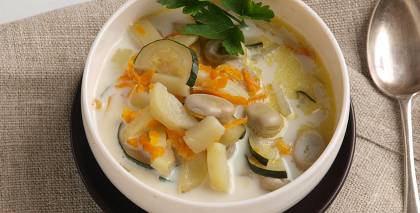 - Uzvāra, samazina karstumu un lēni vāra, līdz dārzeņi ir mīksti, apmēram 15 minūtes. Šajā brīdī svarīgi zupu nepārvārīt!