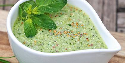 - Pārslaka ar zaļumu mērci un bauda nekavējoties.