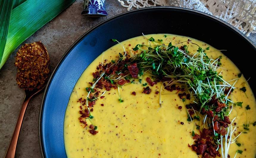 Graudu sinepju pikantums lieliski balansē ar saldo krējumu un maigo puravu garšu, radot restorāna cienīgu rezultātu tavā virtuvē.