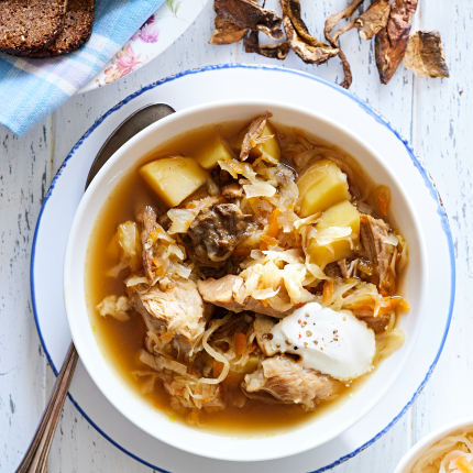 - Uzvāra, noņem no uguns, nogaršo un pielabo garšu pēc saviem ieskatiem.