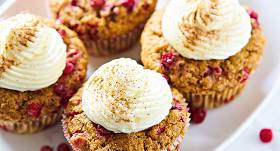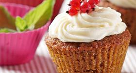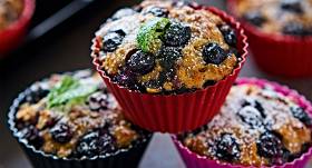 - Mīklu sadala mafinu veidnītēs, kurās ieklāti papīra groziņi, krāsnī 190 grādu temperatūrā cep 20 minūtes zeltaini brūnus. Gatavību pārbauda ar irbulīti – ja, iedurot kēksiņa vidū, tad ārā iznāk tīrs, kēksiņš ir gatavs.