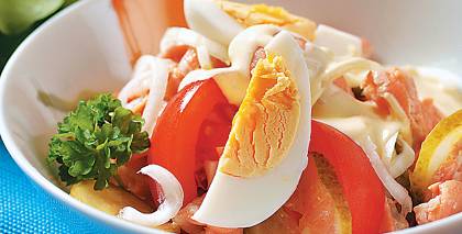 Kārtainie olu salāti ar tunci – viegli un ātri!