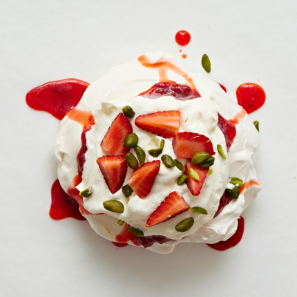 - Liek konditorejas maisiņā ar robotu uzgali, katrai zemenei uzspiež krēma cepuri, pārkaisa ar smalki sakapātām pistācijām.