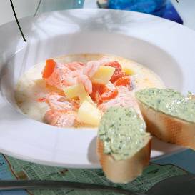 Kanādas un Amerikas pretējā pusē, Klusā okeāna krastos, – Vašingtonas štatā un Britu Kolumbijā – čauderā tradicionāli pievieno kūpinātu lasi.