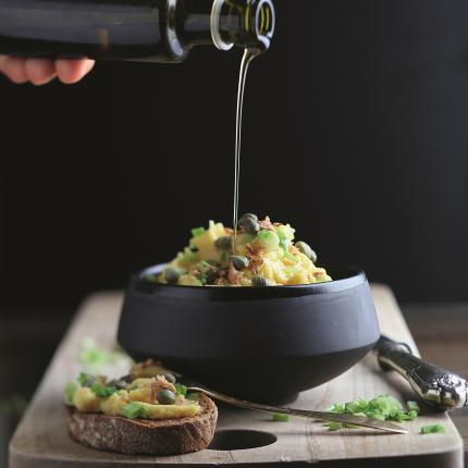3. Liek trauciņā, pasniedz ar olīveļļu un olīvām. Labi garšos ar kādu itāļu vai fokačas maizi un sulīgu tomāta šķēli.