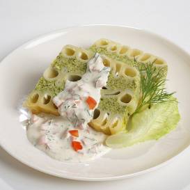 - Pievieno sviestu, pesto, tomātu mērci, kaltētos tomātus, kazas sieru, skābo un saldo krējumu, sāli, piparus.