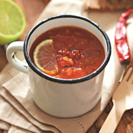 - Pievieno paprikas un čili pulveri, maisot brīdi turpina karsēt. Iemaisa tomātu pastu, tad tomātus.