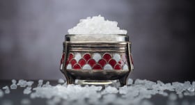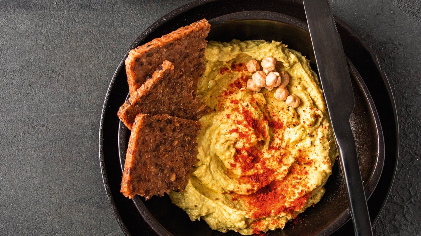 Lai pelēko zirņu bļodiņa reizi gadā nekļūtu par pienākuma un pieklājības nodevu gluži kā lāsts, tapa pelēko zirņu uzkoda. Vizuāli tā var vedināt domāt par zirņu humosu, taču no garšas viedokļa tajā satiekas šķirnes ‘Retrija’ miltainais, maigi saldenais un izteikti zemainās garšas zirņa mīkstums ar karamelizētiem sīpoliem un ķiplokiem un žāvētu cauraudzi, kas ieblendēts zirņu masā. Citrona miziņu, kaņepju eļļu un pupumētru pievieno garšas nobeiguma akcentam.