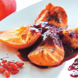 - Saldētās ogas (nav nepieciešams atkausēt) pārber ar cukuru un cieti, pārrīvē citrona miziņu, piespiež sulu, pievieno arī ingveru vai kanēli, labi sajauc un liek ar sviestu iesmērētā cepamveidnē.