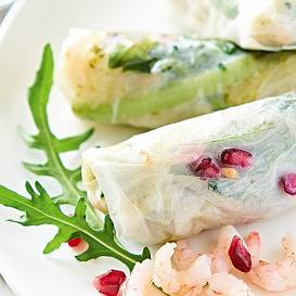 - Saldo krējumu saputo, pievieno sāli un sasmalcinātas garneles (daudzums nav svarīgs; ja garneļu nav daudz, var nepievienot), piepilda groziņus.