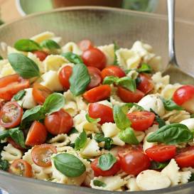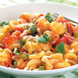 - Kad makaroni gatavi, tos sajauc ar mērcīti, pārkaisa šķipsnu siera vai bazilika un bauda.