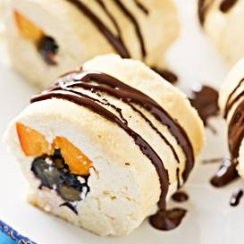 9. No apakšējās malas ruleti satin un atstāj ar tinuma vietu uz leju, noliek vēsumā vismaz uz 1 stundu.