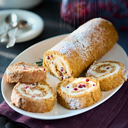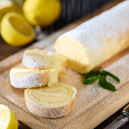 6. Biskvītu ar visu dvielīti uzreiz, vēl karstu, satin ruletē un noliek atdzist apmēram 50–60 minūtes.