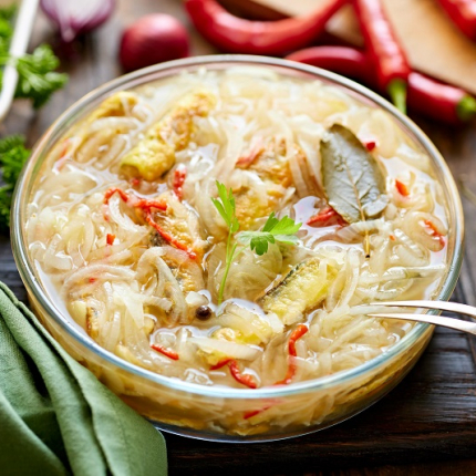 - Marinādei sīpolu sagriež plānās ripiņās, burkānu – šķēlītēs vai gabaliņos, liek katliņā, pievieno pārējās sastāvdaļas, pārlej ūdeni un etiķi, uzvāra un pāris minūtes lēni vāra. Nogaršo, papildina pēc garšas ar trūkstošo, tad no uguns noņem, atdzesē.