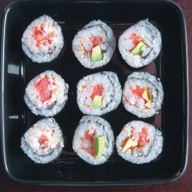 Savukārt par Kalifornijas maki ir atsevišķs stāsts. To 1970. gadā radīja šefpavārs Mašita Losandželosas restorānā Tokyo Kaikan. No tunča gatavo vismaz sešus dažādus suši veidus – atkarībā no tā, kura zivs daļa tiek izmantota. Vieni no tiem top, lietojot treknos tunču vēderiņus. Bet tunčiem vēderi ne vienmēr ir atbilstošā taukumā. Turklāt nedrīkst aizmirst, ka amerikāņi bija visai aizspriedumaini pret termiski neapstrādāta tunča ēšanu, tāpēc Mašita nolēma trekno tunča gabaliņu aizstāt ar avokado, kam ir līdzīga tekstūra. Krabis, avokado un gurķis izrādījās tik gaumīgs savienojums, ka to ātri iecienīja gan kalifornieši, gan vēlāk arī japāņi Japānā. Vienīgā nelaime, ka amerikāņi nebija raduši ēst gandrīz melnus ēdienus – sākotnēji Kalifornijas maki, kā jau visi tā brāļi, bija ietīti tumši zaļajā nori lapā. Tāpēc Mašita radīja pirmo tā dēvēto apvērsto suši – tā pildījumu joprojām kopā saturēja aļģes loksne, bet no ārpuses to noslēpa baltu rīsu kažociņš.