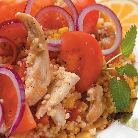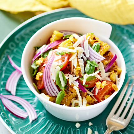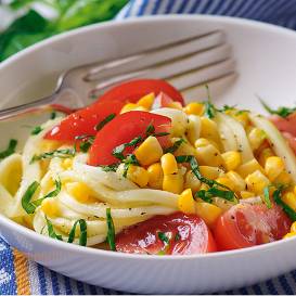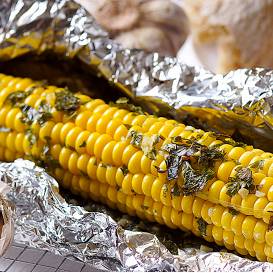 - Ar nazi kukurūzas vālītēm nogriež graudus, liek pannā sakarsētā nelielā eļļas daudzumā, apmaisot cep, līdz tie apcepas brūni, iemaisa kubiņos sagrieztu papriku, sasmalcinātus ķiplokus un sāli.