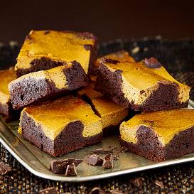 - Pusi biezās, brūnās mīklas klāj veidnē, tai virsū klāj visu krēmsiera masu.