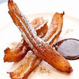 - Atliek vien krēmu izņemt no saldētavas, atlaidināt, līdz var sagriezt, un panēt pareizajā secībā – milti, sakulta ola, rīvmaize. Liek uzkarsētā eļļā un vāra, līdz glīti brūnas. Notecina uz papīra dvieļa, pasniedz pārkaisītas ar pūdercukuru vai kanēli, vai ko nu sirds kāro.