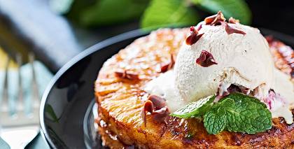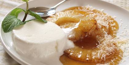 - Grezno ar ananasu šķēlīšu pusēm, dzērvenēm un maziem piparmētru zaļumiņiem.