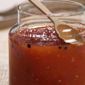 - Pievieno rozmarīnu, čili pārslas, piparus, sāli un balzametiķi, lēni vāra apmēram 30–35 minūtes vai līdz vajadzīgai konsistencei.