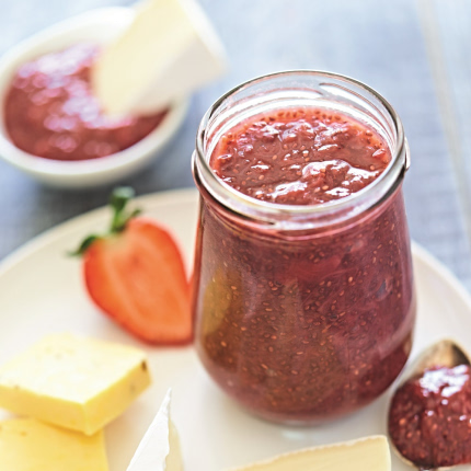 - Zemenes, pārbērtas ar ievārījuma cukuru, atstāj uz 30 minūtēm, tad liek uz uguns, apmaisot vāra, līdz cukurs izkūst.