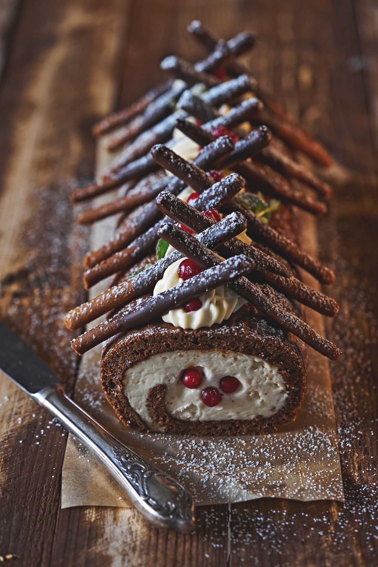Piparkūku rulete ar krēmsieru un brūklenēm