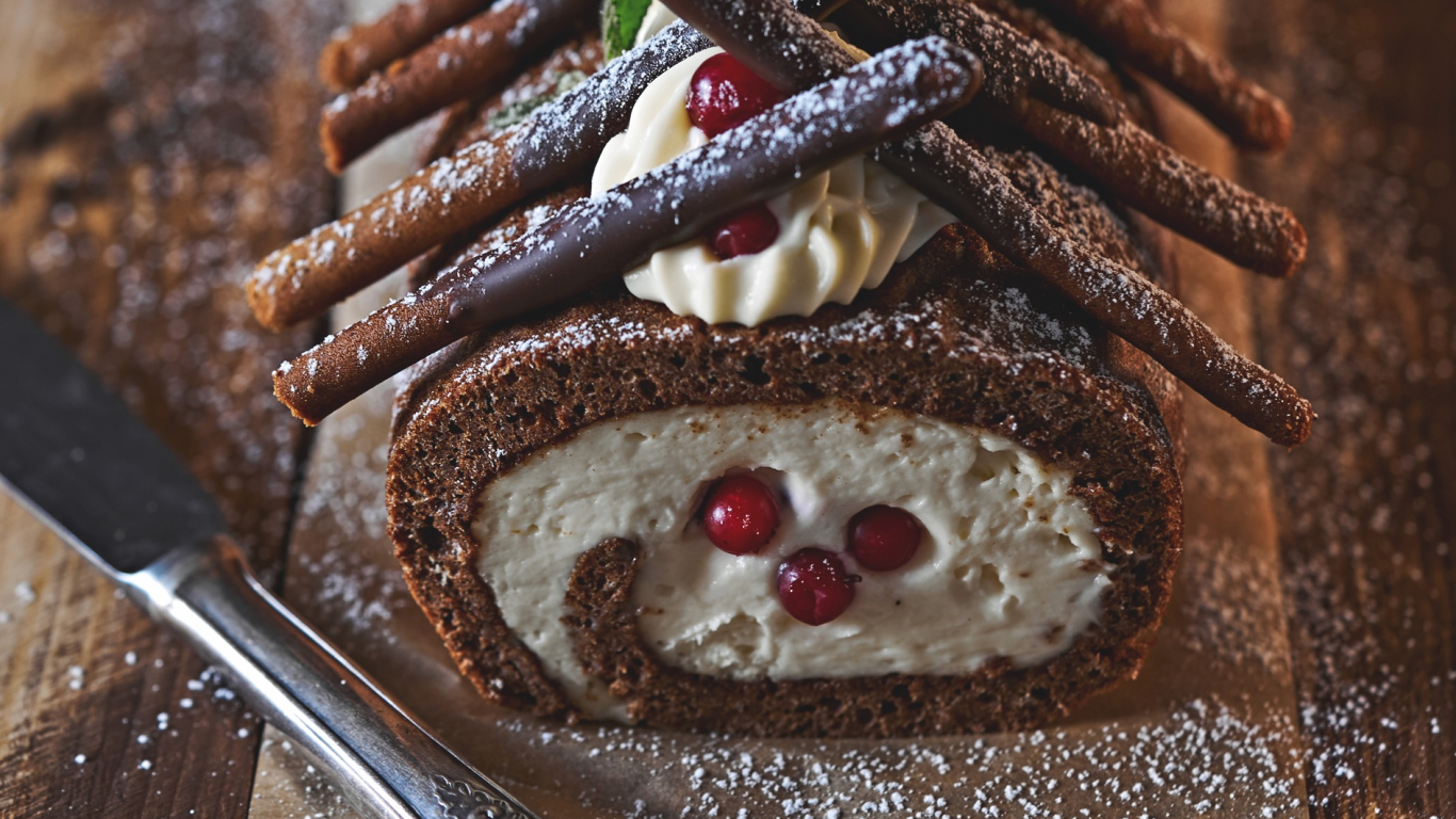 Piparkūku rulete ar krēmsieru un brūklenēm
