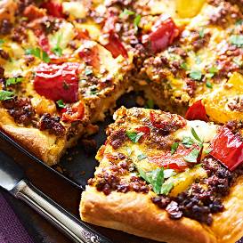 - Krāsnī 200 grādu temperatūrā cep 25–30 minūtes. Izceptu var papildināt ar svaigiem zaļumiem.