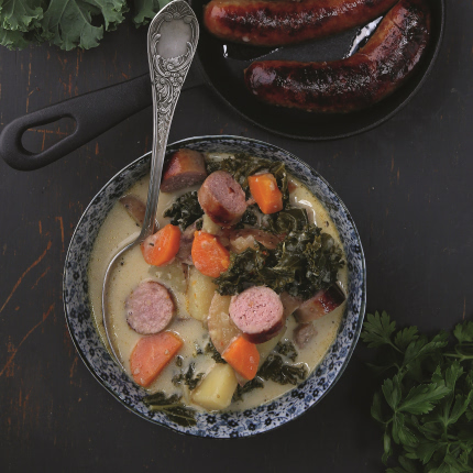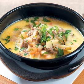 - Tad ar pirkstiem saplēš kāposta lapas nelielos gabaliņos (galveno lapas dzīslu neliek, tā ir pārāk sīksta), ielaiž zupā un pavāra vēl pāris minūtes.
