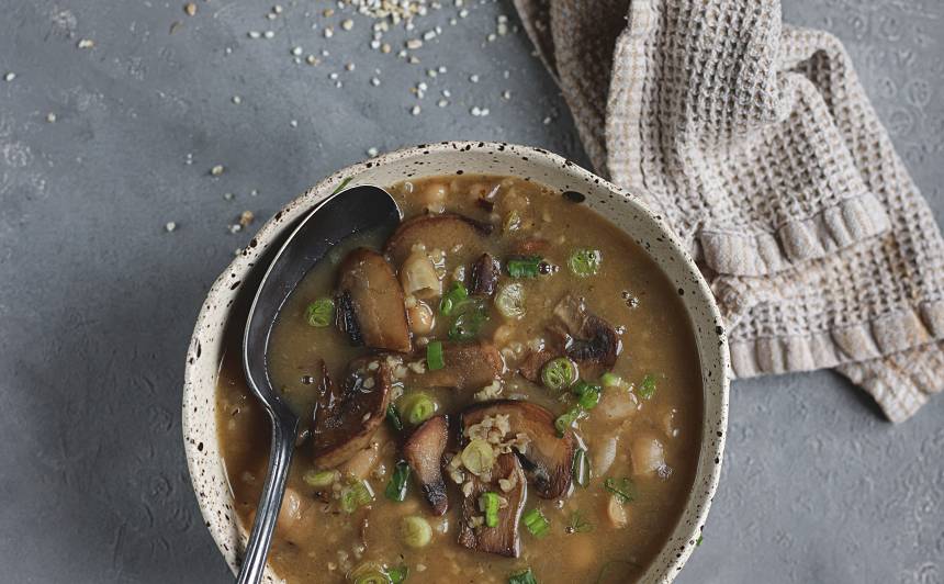 Pupiņu zupa ar sēnēm un miežu putraimiem