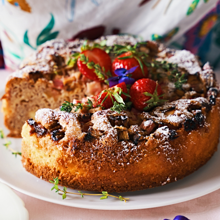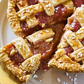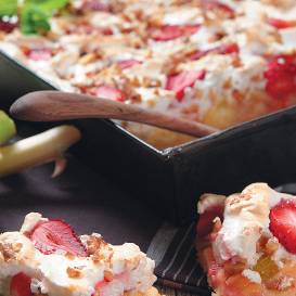 - Pāri klāj rabarberus. Šādam rakstam izvēlas līdzīga resnuma kātus un sagriež vienāda garuma un formas gabaliņos. Tos izkārto zvaigznītēs, sākot no vidus. Brīvi palikušās maliņas aizpilda ar mazākiem gabaliņiem. Var pārkaisīt nedaudz cukura.