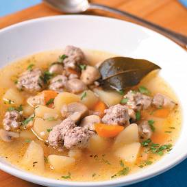 - Masu saveļ palielās bumbās, pa vienai liek zupā.