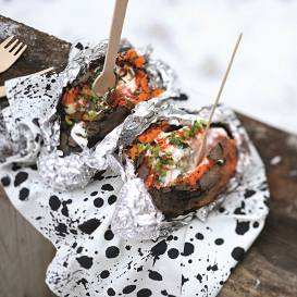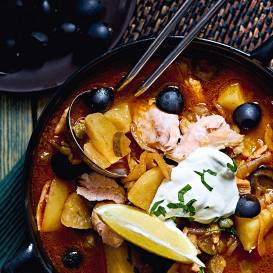 - Pasniedz ar kaperiem, olīvām un skābu krējumu.