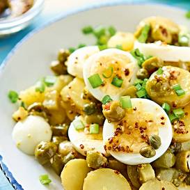 - Nokāš, nosusina, ķiplokus izņem (saglabā), kartupeļus padzesē.