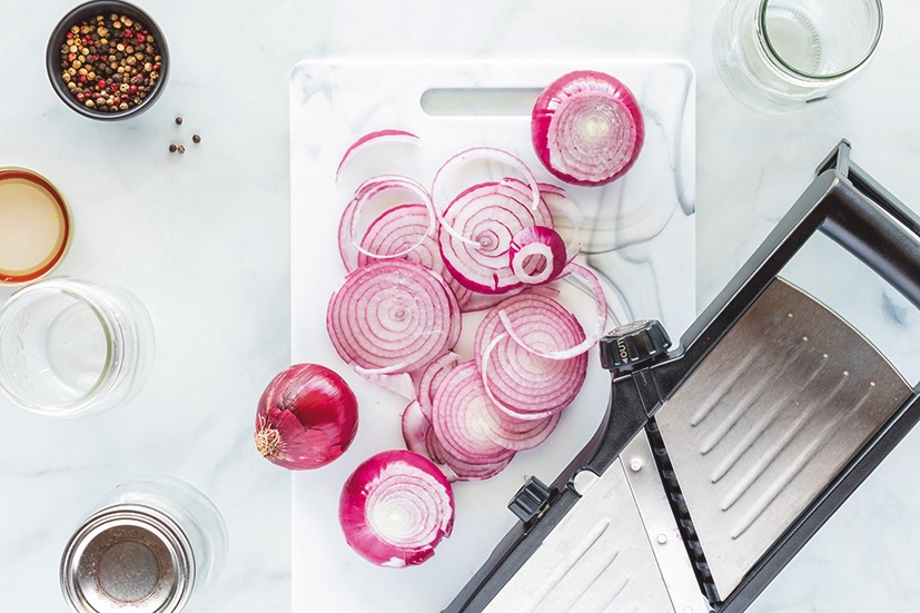 - Griešanai vislabāk izmantot mandolīnu – šķēles izdosies plānas un vienmērīgas.