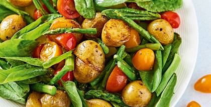 - Romiešu salātus saplucina un ieklāj platā salātu traukā.