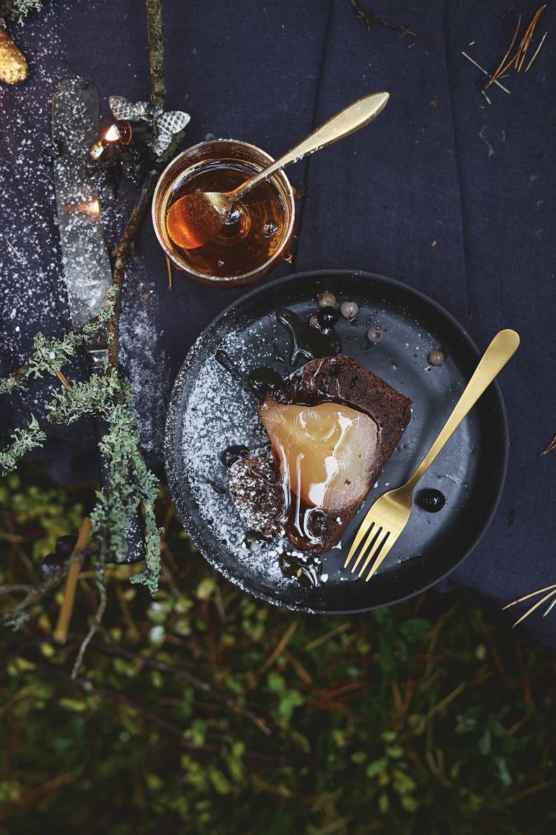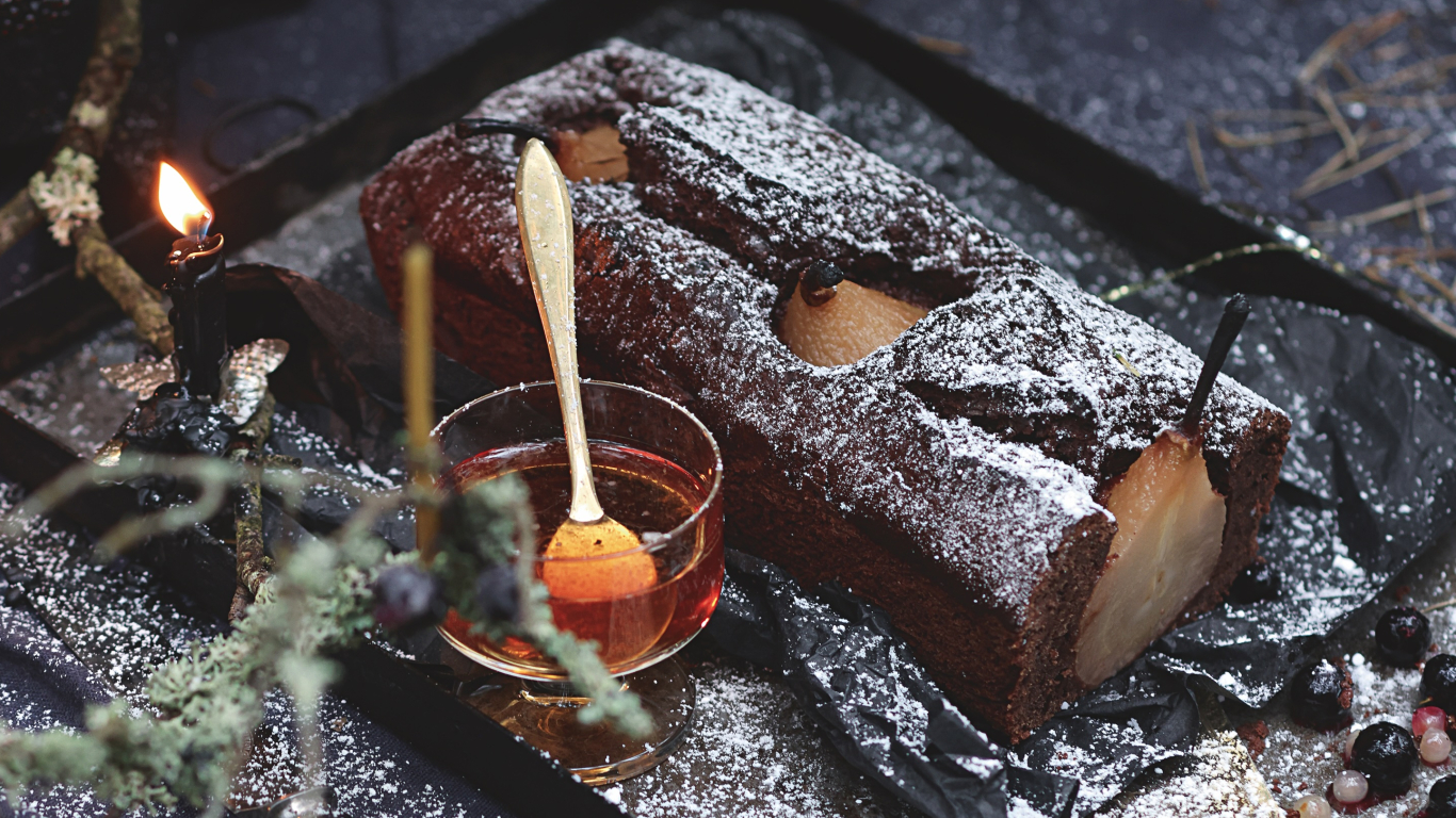 Šokolādes, baltās tējas un garšvielu bumbieru kūka