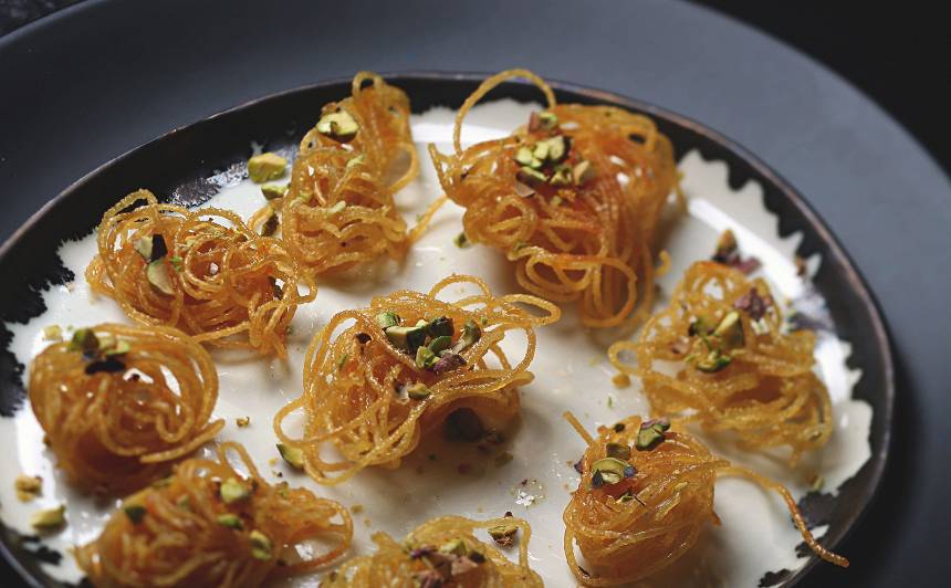 Visa maģija notiek pusminūtes laikā – karstā eļļā novārītie makaroni pārvēršas trauslās, zeltainās ligzdiņās. Kardamons un pistācijas šim procesam piešķir to nepieciešamo eksotikas devu, kas liek aizmirst, ka galvenā sastāvdaļa ir tie paši spageti, ko parasti ēdam ar Boloņas mērci. Tas ir izcils veids, kā pārsteigt viesus vai sevi pašu, kad gribas ko kraukšķīgu, saldu un pavisam neierastu.