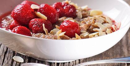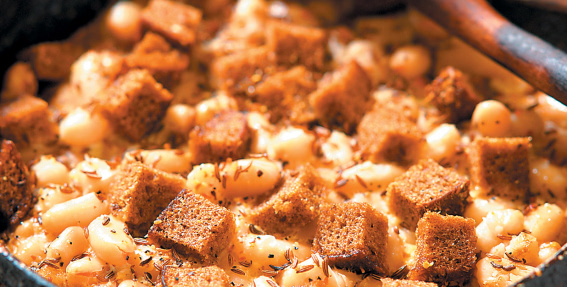 - Sausā pannā apgrozot kraukšķīgas cep bekona šķēlītes, tad noņem no pannas un sagriež gabalos, iemaisa vārītajā kvinojā, pievieno arī uz pusēm pārgrieztus tomātiņus.